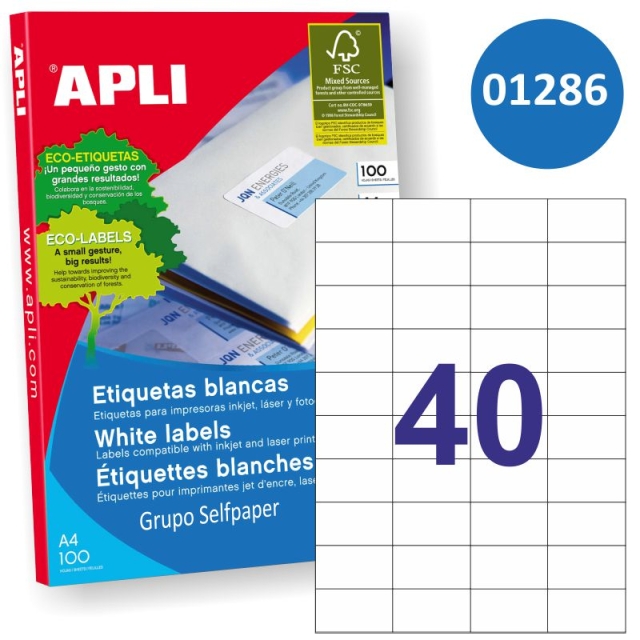 Etiquetas Apli 01286 - 52.5x29.7mm 40x impresora