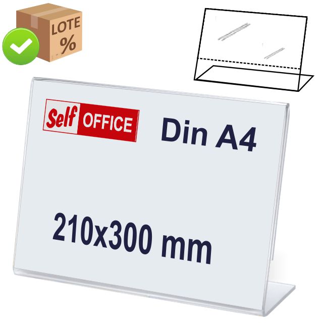 Expositor sobremesa en L, Din A4, horizontal, inclinado, a una cara. Lote Ahorro especial. Soporte: 300x215 mm. Util como portaprecios