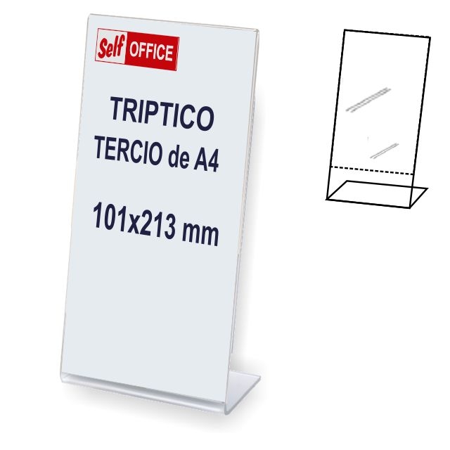 Soporte tipo metacrilato en L inclinado 1/3 de Din A4, Folio