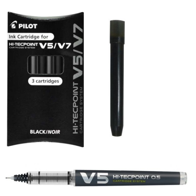 Caja con 3 cartuchos de Recambio para Pilot V5, V7 recargable. Hi-Techpoint 0.5. Disponible en azul BXS-IC-L-S3, rojo BXS-IC-R-S3, y negro BXS-IC-B-S3. Recargas para Pilot V5 recargable caja con 3 cartuchos de recambio. Tinta Liquida. Valido para V5 y V7 refillable. Cartridge System