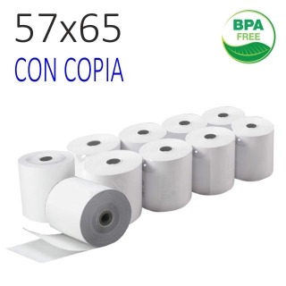 DisponibleTarifa : 1,09Ahorro hasta:44%desde: 0.61 €0,74 con Iva - Rollo de papel registradora 57x65x12 duplicado con copiaRef: 57X65DUP [ 16177 ]